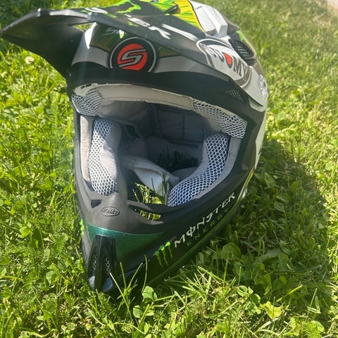 Kvalitethjelm fra AGU. Er blitt brukt 1 gang siden kjøp for 3 år siden. Ca 2500,- ny. Mc hjelmen passer til jente, er en 16 åring som har brukt den.