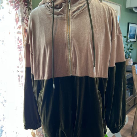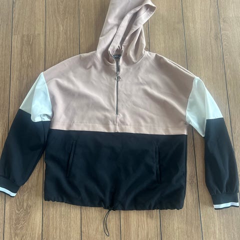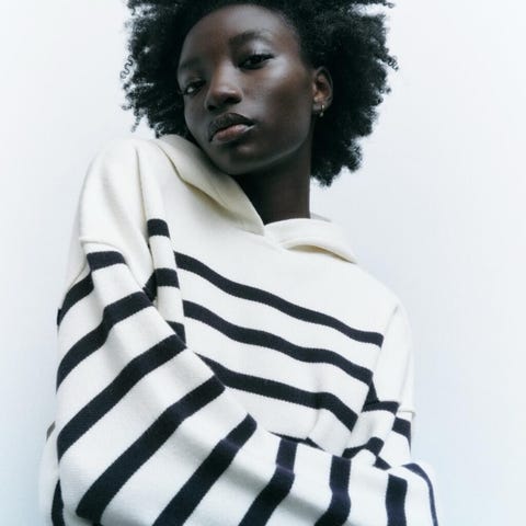 Zara hettegenser i størrelse M for kvinner, laget av polyester. Genseren har svart og hvit stripet mønster og inkluderer hette. Passer til daglig bruk og gir et komfortabelt plaggvalg.
