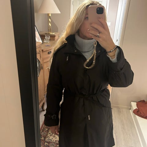 Regnkåpe fra Mark Spencer. Kjøpt i England men aldri brukt. Har lignende kåpe. Størrelse 8. Stillig og perfekt til vårvær.