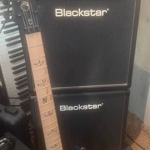 Gamle aktive tone cabinet som virker som de skal og har et godt lydbilde.