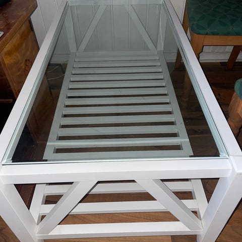 Foreldrene kjøpte bordet rett før de flyttet fra en større bolig til et mindre rekkehus, og noen av møblene ble derfor for store. Disse ønskes nå solgt. Opprinnelig pris lå på rundt 5000-,. Det ene bordet er 80x80 og den andre er 70x70, rundt tre år gamle.