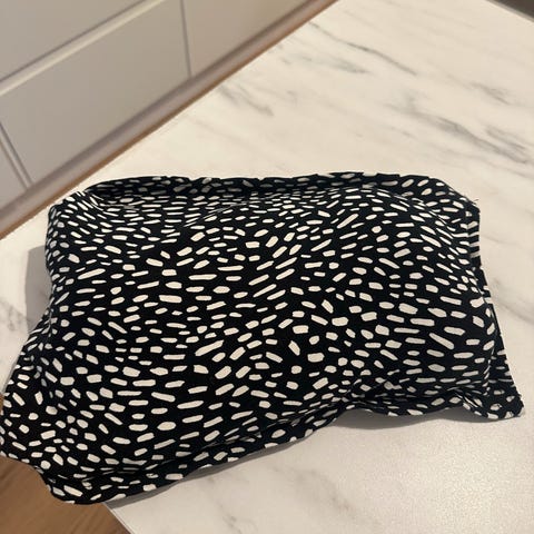 Enkel å legge sammen med posen som er gjemt i enden av sjalet.