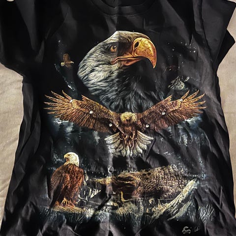 T-skjorte fra Flørli 4444, den lille kraftbygda i Lysefjorden i Rogaland med verdens lengste tretrapp. Brukt en gang. Brun. Str. M. 100% bomull.
