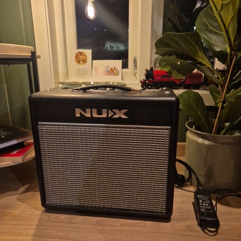 Selger en NUX Mighty 20 BT gitarforsterker på 20 watt. Dette er en god øvingsforsterker til hjemmebruk. Selges fordi den ikke blir brukt nok, og fordi jeg har gått over til en annen forsterker.