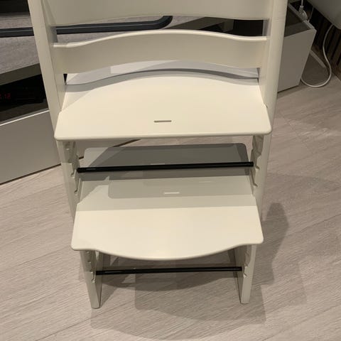 Kjempepraktisk barnestol med romslig sittedel. Puten kan føle med om ønskelig