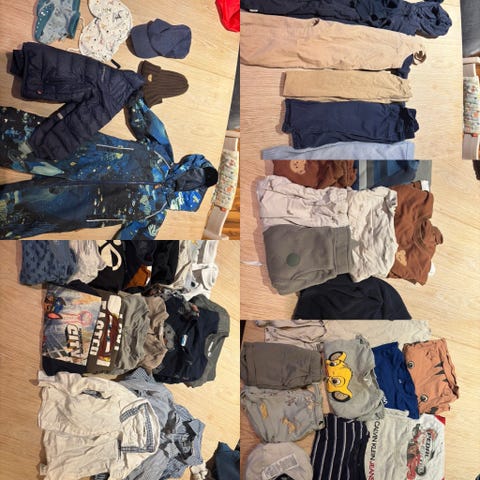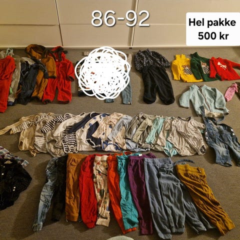 Alt kjøpt nytt og brukt til et barn. God stand. Den hvite bodyen har et lite merke i halsen, ikke forsøkt flekkfjerner.