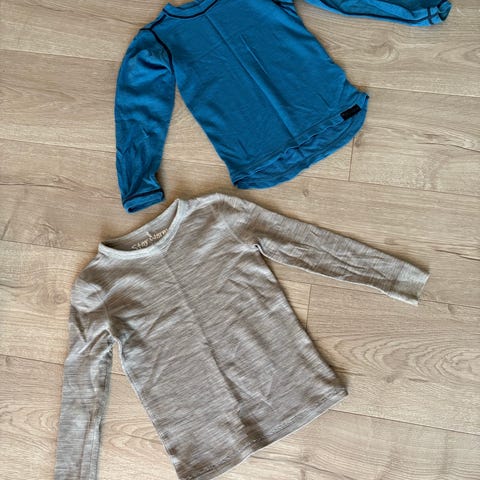 Rosa genser har tusj på fremsiden. Turkis genser har en flekk på bakside. Ellers hele og fine og funker supert som innerste lag.