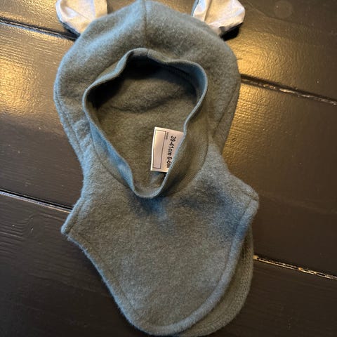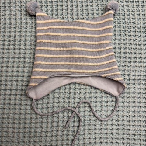 Søt babylue i myk merinoull fra Reflex. Størrelse 39-41 (0-6 måneder). Refleks-detaljer på ørene. Brukt til 1 barn.