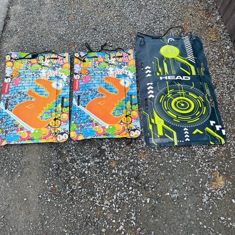 Rundt akebrett fra Hamax i sort. Har vasket over med fuktig klut rett før bildet ble tatt. God stand.