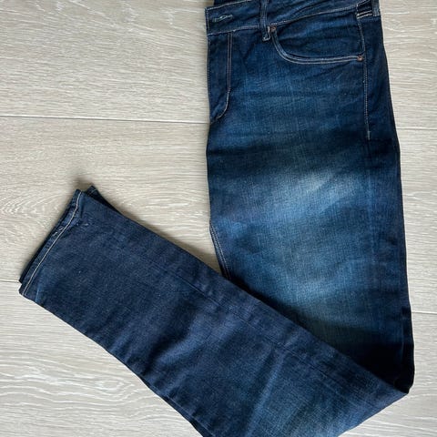 H&M Denim jeans i blå farge, størrelse 34 for dame. Laget av denim materiale med midje størrelse W33.