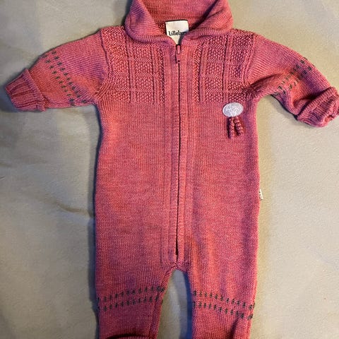 Lillelam Ulldress i lilla farge, størrelse 62, designet for jenter. Laget av ullmateriale som gir varme og komfort. Matchende Lue som på førte bilde følger med. Er gode i str så kan brukes både før og etter den str.