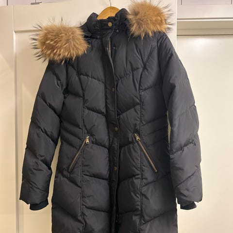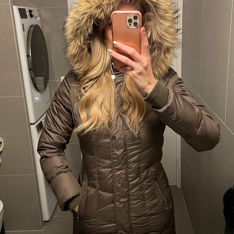 Dunejakke med pels på hetten.