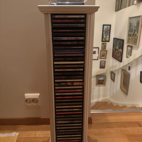 Dette er en veldig fin og praktisk CD og DVD holder. Det er god plass til de fleste typer filmer og spill med ca 2cm mellom hver hylle