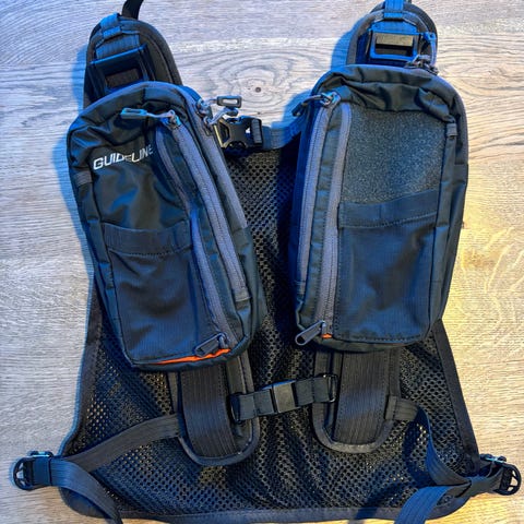 Guideline Fiskevest i størrelse L med flere lommer og nettingfôr. Vesten har glidelåslukking og er designet for praktisk bruk ved fiske. Helt og pen. Svært lite brukt.