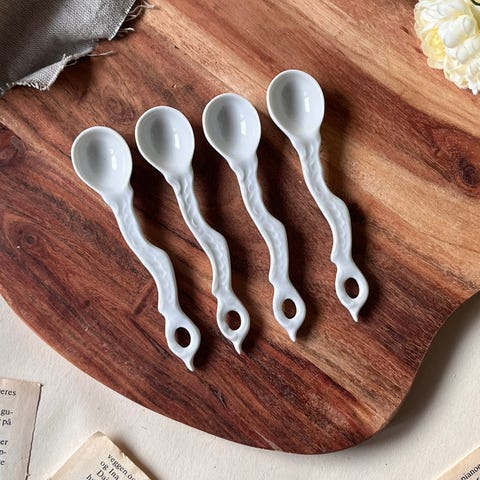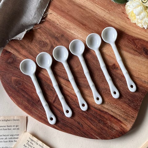 Søkeord: skje til kaffe te sukker drikker servering serveringskjeer serveringskje porselen keramikk hvit kjøkken gave gavetips presang kjøkkenredskap redskap redskaper kjøkkenredskaper skjeer glans tapas