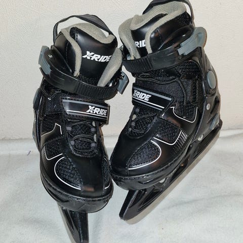 Barneskøyter i størrelse 27-30, egnet for ishockey. Skøytene kan justeres i lengden så den passer perfekt