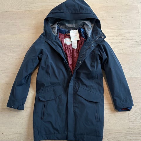 Mørkeblå SWIMS parkas i god stand. Størrelse S. Lommer med glidelås. I god stand. Fast pris