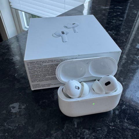 Apple AirPods Pro 2. gen med USB-C lading. Boksen er uåpnet (ikke brutt forseglingen). Vant dem i en konkurranse på skolen rett etter jeg kjøpte meg samme modell. Har derfor ikke kvittering. Boksen er også signert av to på kombinertlandslaget.