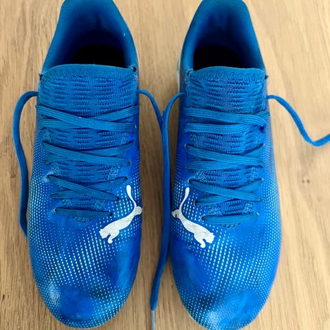 Nike fotballsko i lyseblå farge med rosa detaljer. Skoene har knotter under for bruk på gressbaner. Designet med snøring og høy ankel for støtte. Passer for bruk i fotballspill. En knott er ødelagt (se bilder) derfor selges billig.