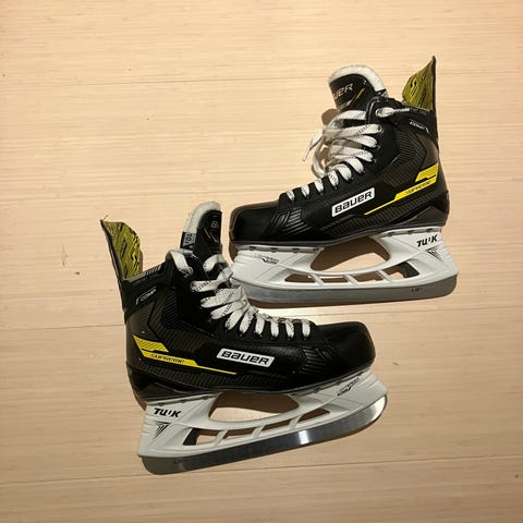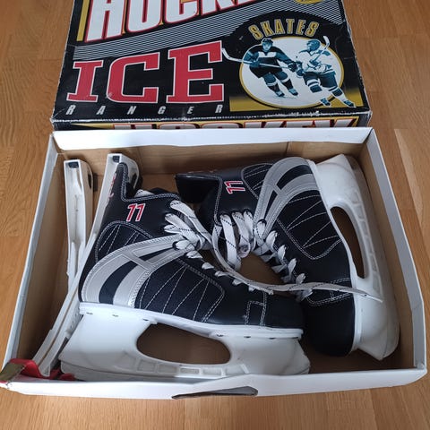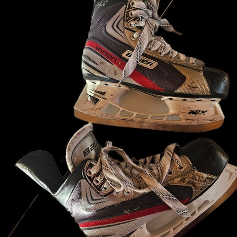 Bauer ishockeyskøyter str 7. Tilsvarer norsk 40/41. Skøytene er designet for ishockey og har svart og rød fargekombinasjon med hvite lisser. Brukt noen få ganger over to vintre.