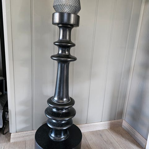 Pent sett bestående av en lysestake på 60 cm og en hylle på 62 av metall.