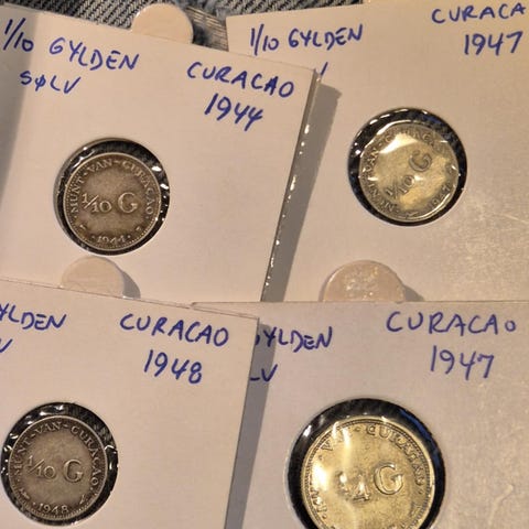 Curacao 1/4 gulden 1944 og 1947 sølv mynter