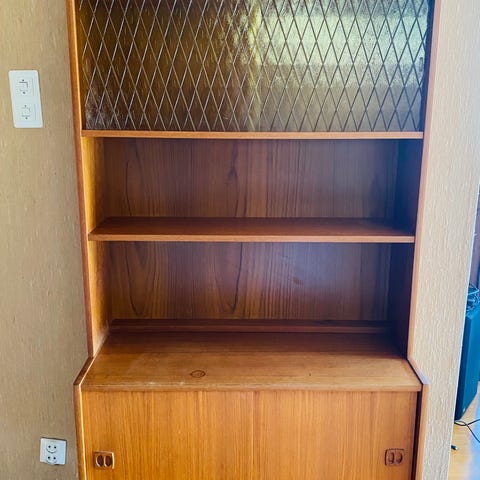 Ergo de Luxe skapdel med to glasskyvedører. Se siste bildet for skapet montert på en reol.