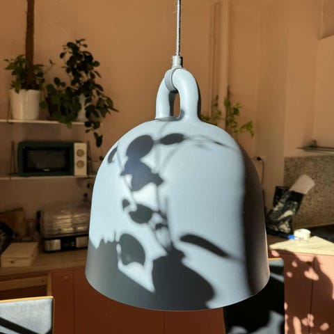 Pendellampe laget i kryssfiner med et varmt preg og et spennende lysspill.
