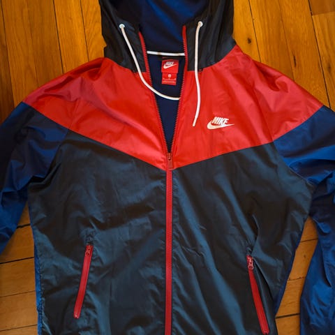 Nike Air Løpejakke for herre i størrelse S. Jakken er svart og designet for løping.. Selges billig siden den ikke blir brukt.