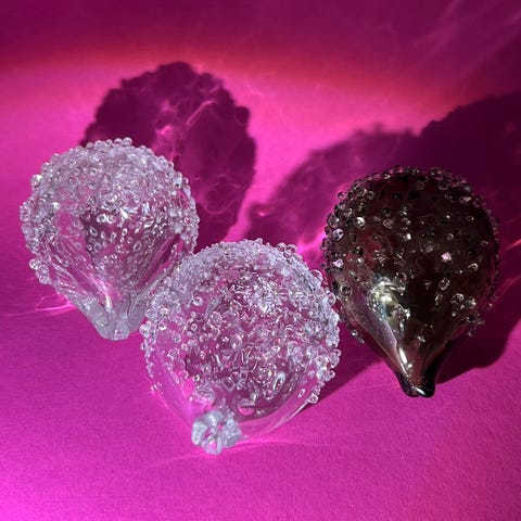 Flotte, høye glass /champagneglass med nydelig flerfarget dekor.