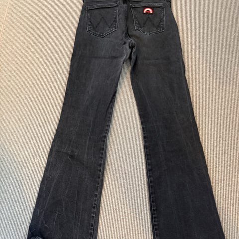 Wrangler Flare jeans i blå farge, størrelse W28 tilsvarer ca M. Jeansene har en god passform og er slengbukser (flare) av god kvalitet. Intet å bemerke, buksen er pent brukt og ser/kjennes som ny ut.