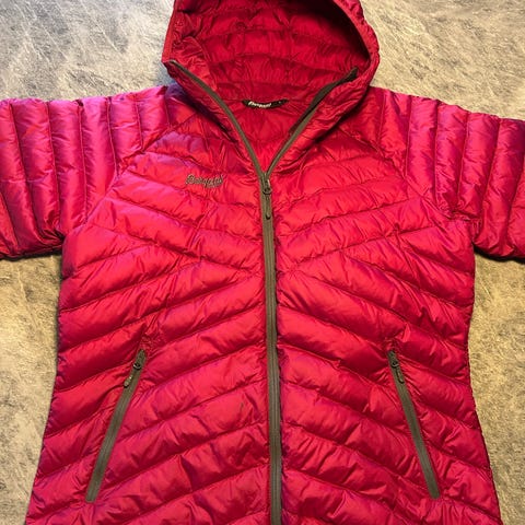 Bergans dunjakke i svart farge, størrelse M for dame. Jakken er laget av dun 80/10 700 cuin. noe som gir god isolasjon og varme. Passer til bruk i kaldt vær og utendørsaktiviteter.