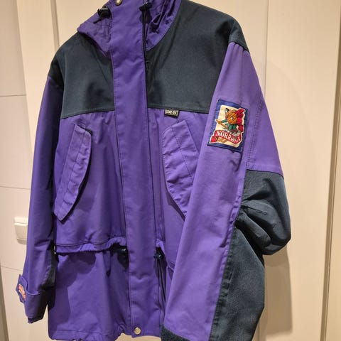 Fint eksemplar med mindre utvendig slitasje ved ene underarmen og noe patina på stormklaff (jakken er tross alt 25 år og brukt). Innvendig er det lite slitasje og sømtape er stort sett veldig bra. Romslig størrelse M.