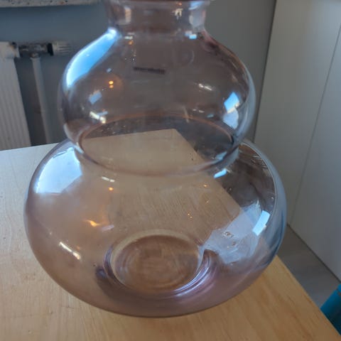 Munnblåst Denizli glassvase. Har vært sporadisk brukt. Unikt produsert, og finnes ikke en identisk. Kjøpt på Tilbords for mange år siden. Superkul vase som bare ikke passer inn lenger.