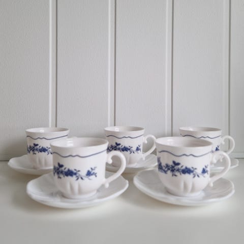 Selger kaffeservise fra Porsgrund Porselen med 6 kaffekopper med skåler.