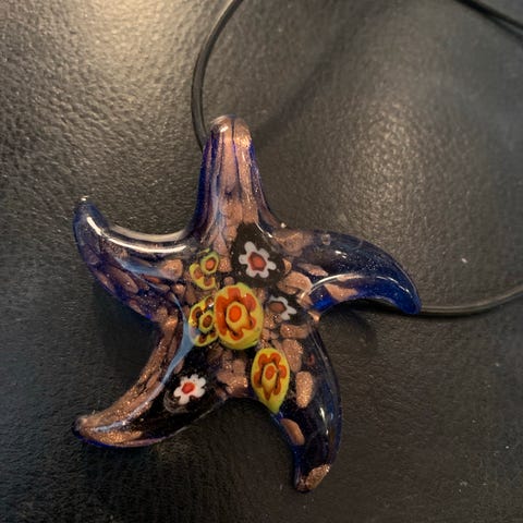 Fantastisk søt! Nesten ny. Stjerne er murano-glass + sølv, skjede er sølv med mester stempler. Nesten ny!