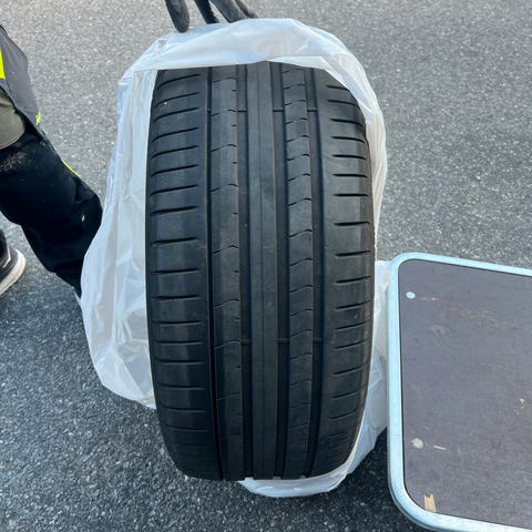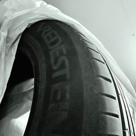 Dekkene er pent brukt og har godt med mønster igjen: ca. 5 mm på to dekk og 6 mm på to dekk.