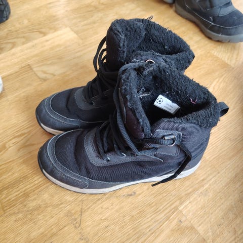 Viking vintersko unisex i størrelse 35. Skoene har Gore-Tex membran, har solid såle med godt grep og borrelås for enkel justering. Materialet er slitesterkt og egnet for aktiv bruk.