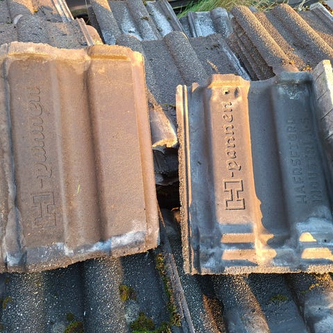 Selger H-panner fra 80-talet. Stablet på paller.