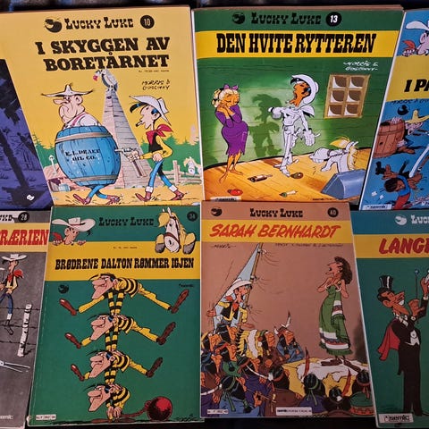 Inkluderer karakterer som Lucky Luke, Jolly Jumper, og andre fra serien. Egnet for fans av tegneserien og animasjonsserier.