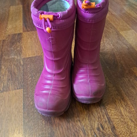Slushster barne gummistøvler i størrelse 26, gul farge. Laget for å gi beskyttelse mot vått vær, med en slitesterk og vanntett konstruksjon foring i ull.