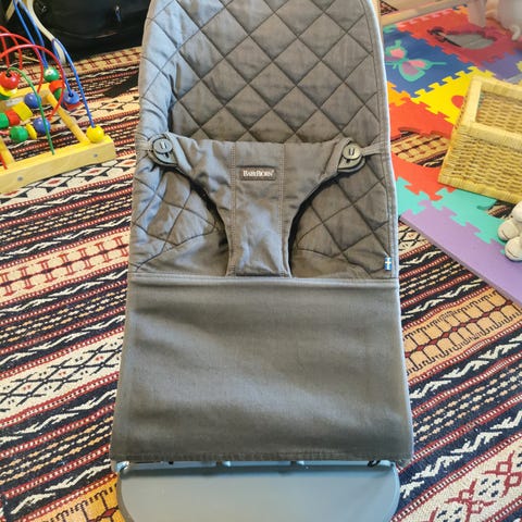 Vippestol til salgs. Trekk er noe revnet nederst på stolen. Du ser bilde av dette. Ellers helt grei.