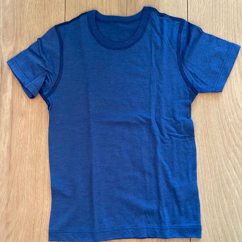 Lys blå Janus T-skjorte (med mørkeblått felt) i merinoull, str. 150.