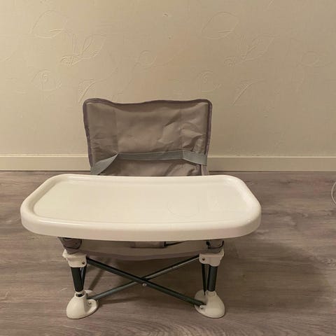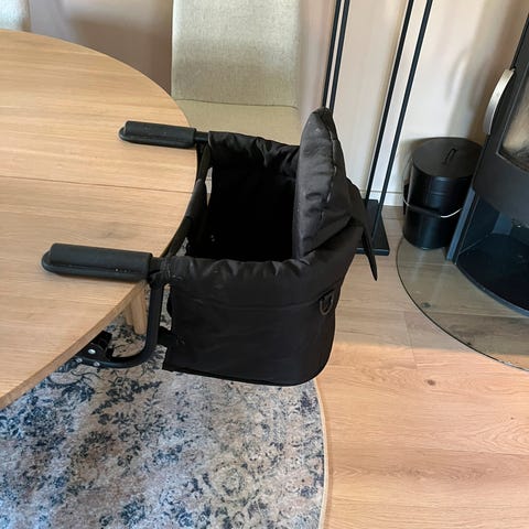 Lite brukt barnestol som spennes på en ordinær stol. Manual følger med. Har et avtakbart trekk som kan vaskes.