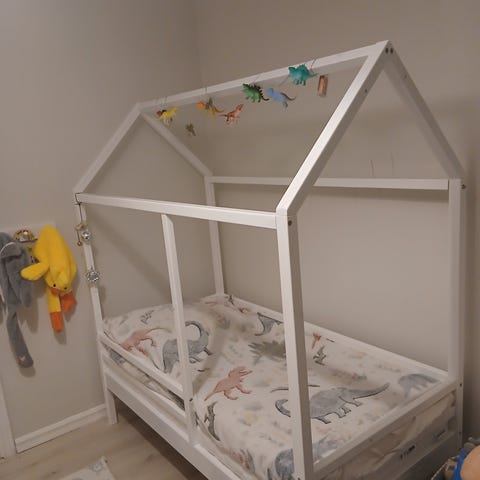 Fint brukt barneseng med sengehest og madrass ( med trekk som kan ta av).