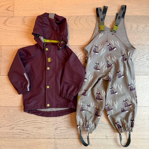 Brukt av to barn, men pent brukt da de knapt kunne gå da denne passet. Noe slitasje på knær og rumpe, men ikke slik at det påvirker bruk. Kjøpt ny for 1599.