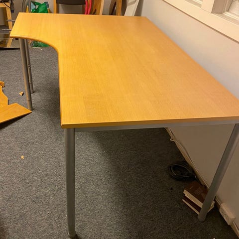 Justerbare bein. Må hentast ved Kjølberggata 18, kan hjelpe med utbæring.