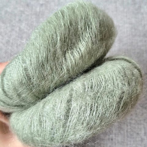 Fiberinnhold: 56% mohair, 26% silke og 18% ull