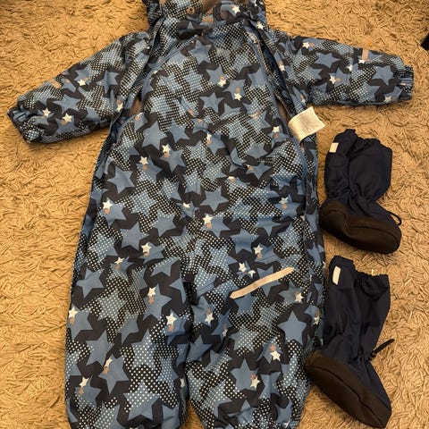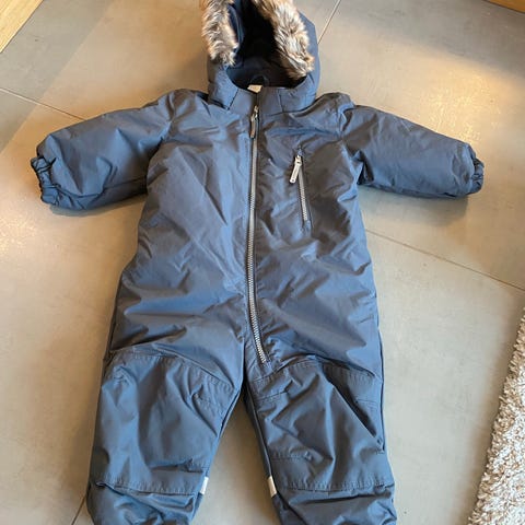 Arket barneheldress i størrelse 80, farge blå med rutemønster. Laget av polyester, egnet for både gutter og jenter. Dressen har hette og hel glidelås foran. Hender og føtter kan brettes over med stoff. Så vidt brukt.