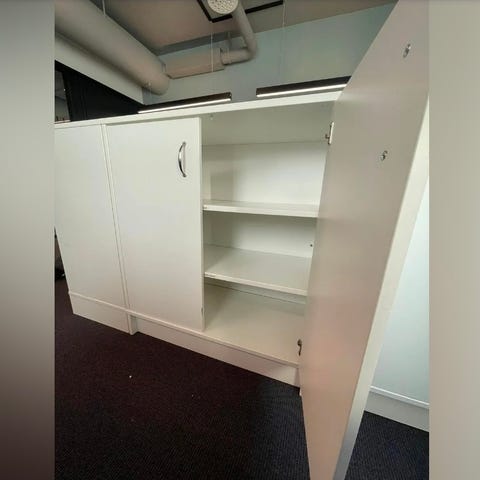 3 stk baggebo skap fra ikea selges samlet. De har blitt brukt som en del av en bokhylle og har derfor 2 skruehull på toppen, samt noen merker (se bilder). Den ene hylla har også et lite merke på fronten (se bilde).